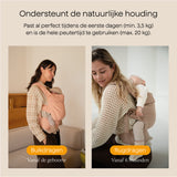 Met liefde ontworpen in Amsterdam, gemaakt voor ultiem gemak. In een paar simpele stappen zit ‘ie perfect, zonder gedoe. Het ademende GRS-gecertificeerde katoen voelt heerlijk zacht tegen jullie huid en is helemaal babyproof.