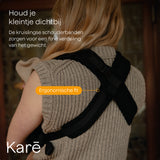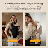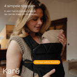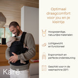 De diepe, zwarte tint past bij elke outfit - of jullie nu samen brunchen in de stad of op avontuur gaan in de natuur. Hij is ontworpen in Amsterdam met oog voor elk detail: deze draagzak biedt perfecte ergonomische ondersteuning voor het ruggengraatje en groeit mee met jullie avonturen samen. Van de eerste knuffeltjes (3,5 kg) tot grote ontdekkingsreizen (20 kg): We Karē for all.