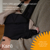 We geloven dat de mooiste knuffelmomenten met je kleintje ook zacht moeten zijn voor onze planeet. Daarom maken we onze Karē carriers van gerecycled katoen, gecertificeerd volgens de Global Recycled Standard (GRS). Dit betekent dat jouw draagzak niet alleen perfect aanvoelt, maar ook bijdraagt aan een mooiere wereld voor de volgende generatie.