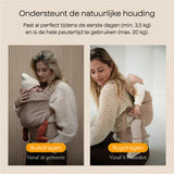In slechts vier simpele stappen bevestig je de carrier, zodat jullie snel kunnen genieten van alle mooie momenten samen. Superhandig! En ook fijn: deze premium carrier is niet alleen zacht voor jullie, maar ook voor onze planeet. Van het gerecyclede katoen tot de biologisch afbreekbare verpakking: elk detail is met zorg gekozen voor een mooiere toekomst.