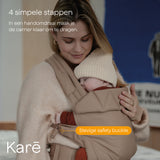 Omhels de mooiste momenten samen met de Karē Baby Carrier Soft Sand. Deze premium draagzak is zo zacht en warm als de knuffels met je kleintje, en groeit met jullie mee van pas na de geboorte (vanaf 3,5 kg) tot ruim in de peutertijd (tot 20 kg).