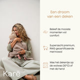Onze dekentjes zijn gemaakt van premium RWS-gecertificeerde merinowol - zo zacht als een wiegje en perfect voor het gevoelige huidje van je kleintje. Dit bijzondere materiaal is niet alleen heerlijk luchtig en ademend, maar zorgt ook voor een natuurlijke temperatuurregulatie. Ideaal voor baby's die het hele jaar door comfortabel willen blijven!