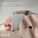 De RWS-certificering (Responsible Wool Standard) betekent dat onze wol komt van schaapjes die een fijn leven hebben. Ze kunnen vrij rondlopen in de natuur en worden met veel zorg behandeld. Deze manier van werken zorgt niet alleen voor de allerzachtste wol, maar is ook nog eens goed voor het milieu. Zo weet je zeker dat je een keuze maakt die lief is voor je kleintje én voor onze planeet.
