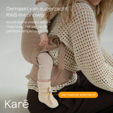 Onze sokjes zijn gemaakt van premium RWS-gecertificeerde merinowol - zo zacht als een wiegje en perfect voor de gevoelige voetjes van je kleintje. Dit bijzondere materiaal is niet alleen heerlijk luchtig en ademend, maar zorgt ook voor een natuurlijke temperatuurregulatie. Ideaal voor baby's die het hele jaar door comfortabel willen blijven!