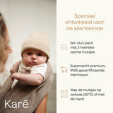 De kleinste wondertjes verdienen de zachtste mutsjes. Deze mutsjes zijn speciaal ontworpen voor pasgeboren baby'tjes tot 6 maanden. Ze zijn gemaakt van het allerzachtste premium, RWS-gecertificeerde merinowol. Dit maakt ze niet alleen licht als een veertje maar zorgt ook voor natuurlijke vocht- en temperatuurregulatie, zodat je kleintje er heerlijk in weg zal dromen.